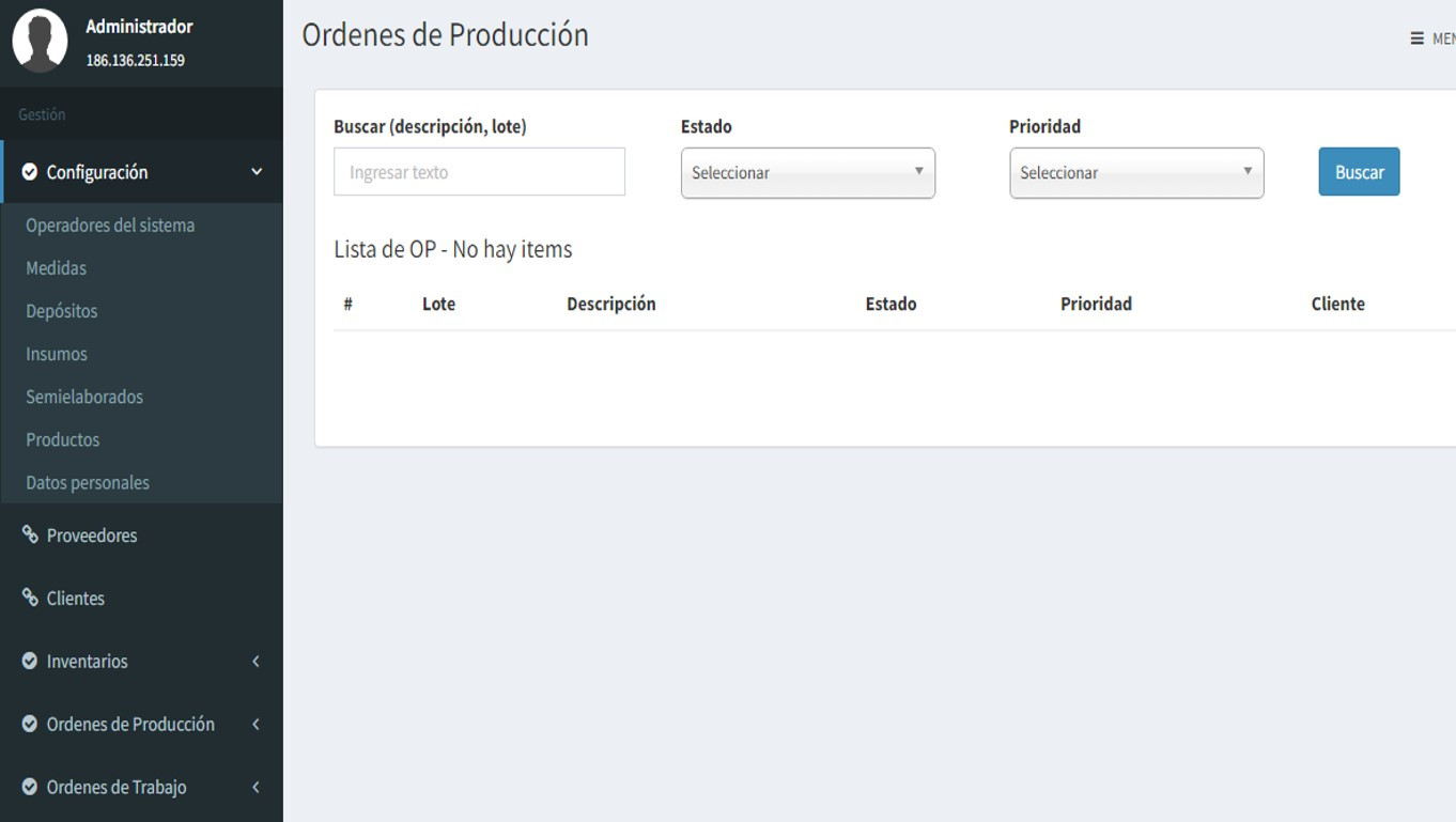 El de Gestión de Producción permite la administración de todos los procesos productivos, la gestión de diferentes depósitos, estados, auditoria y trazabilidad, etc.